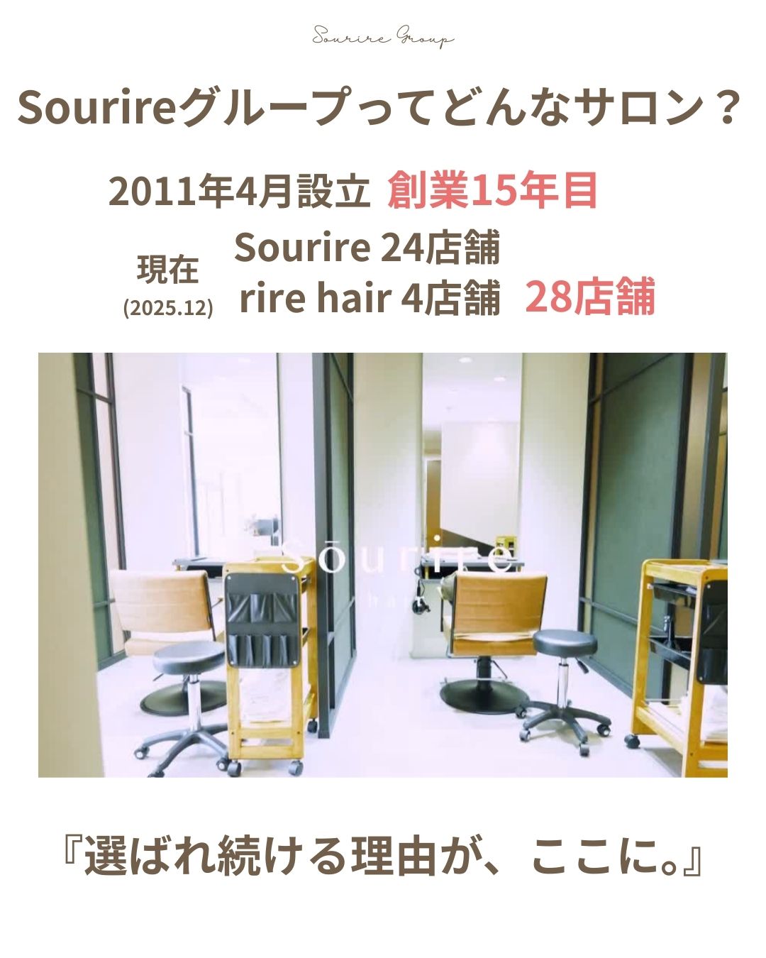 福岡県を中心に美容室を展開する「sourire」グループでは、